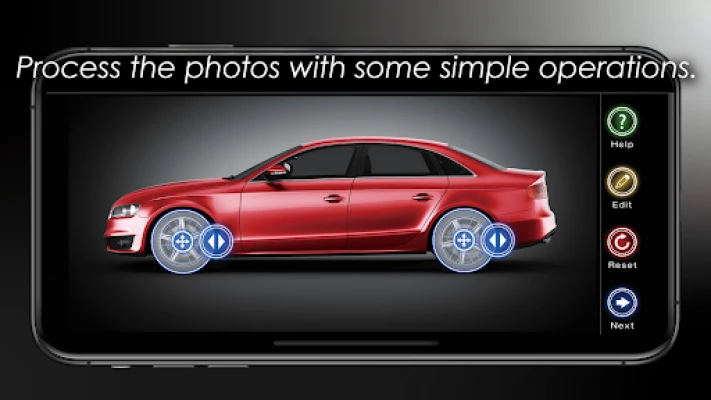 With this app you can process the photos of car like as if it was really modified with some simple operations. In addition, it is possible to change the wheels by using the wheel synthesis function.